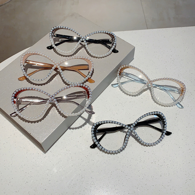 European And American Style Ins Cat’s Eye With Pearl Anti-blue Light Glasses